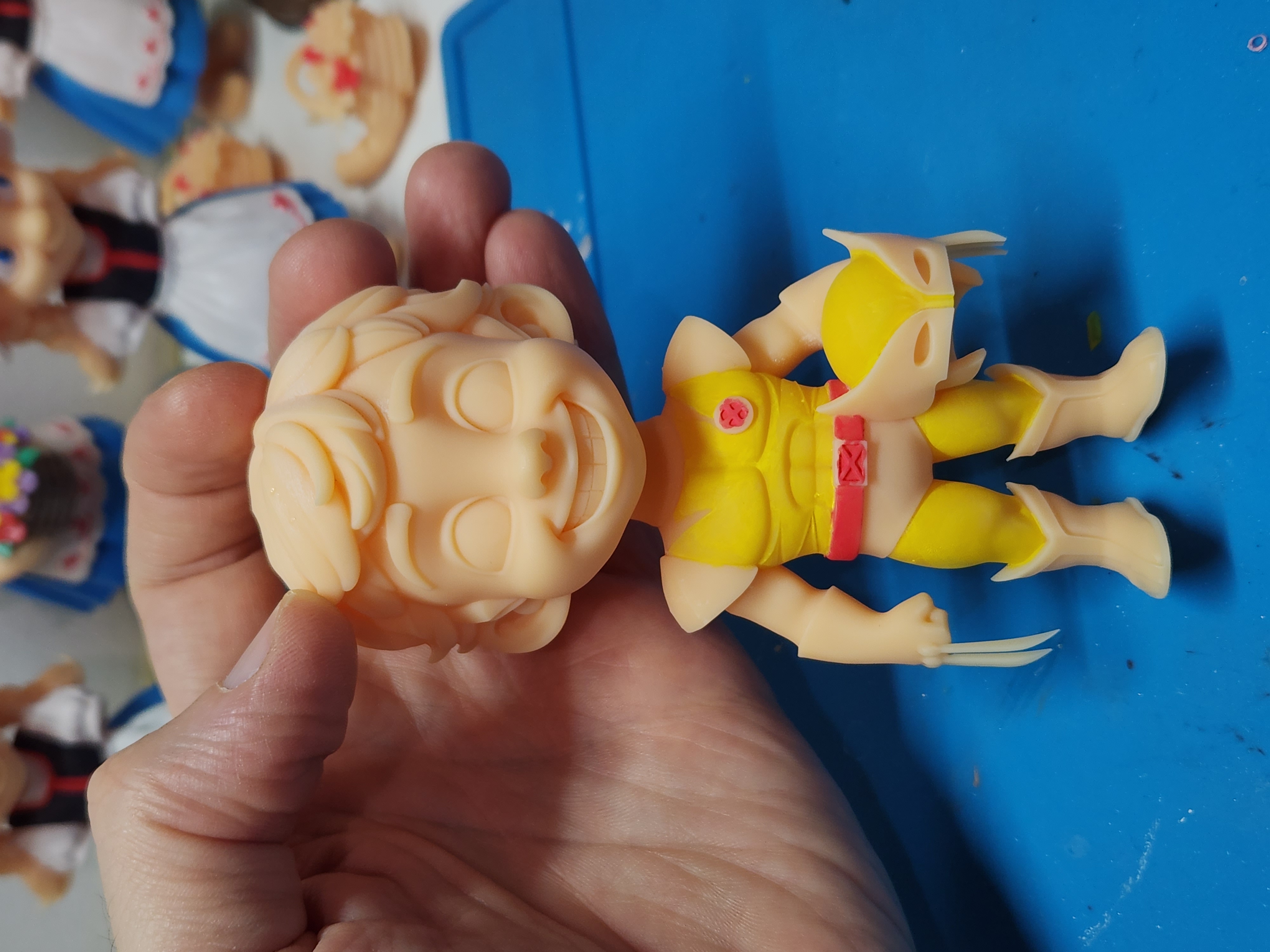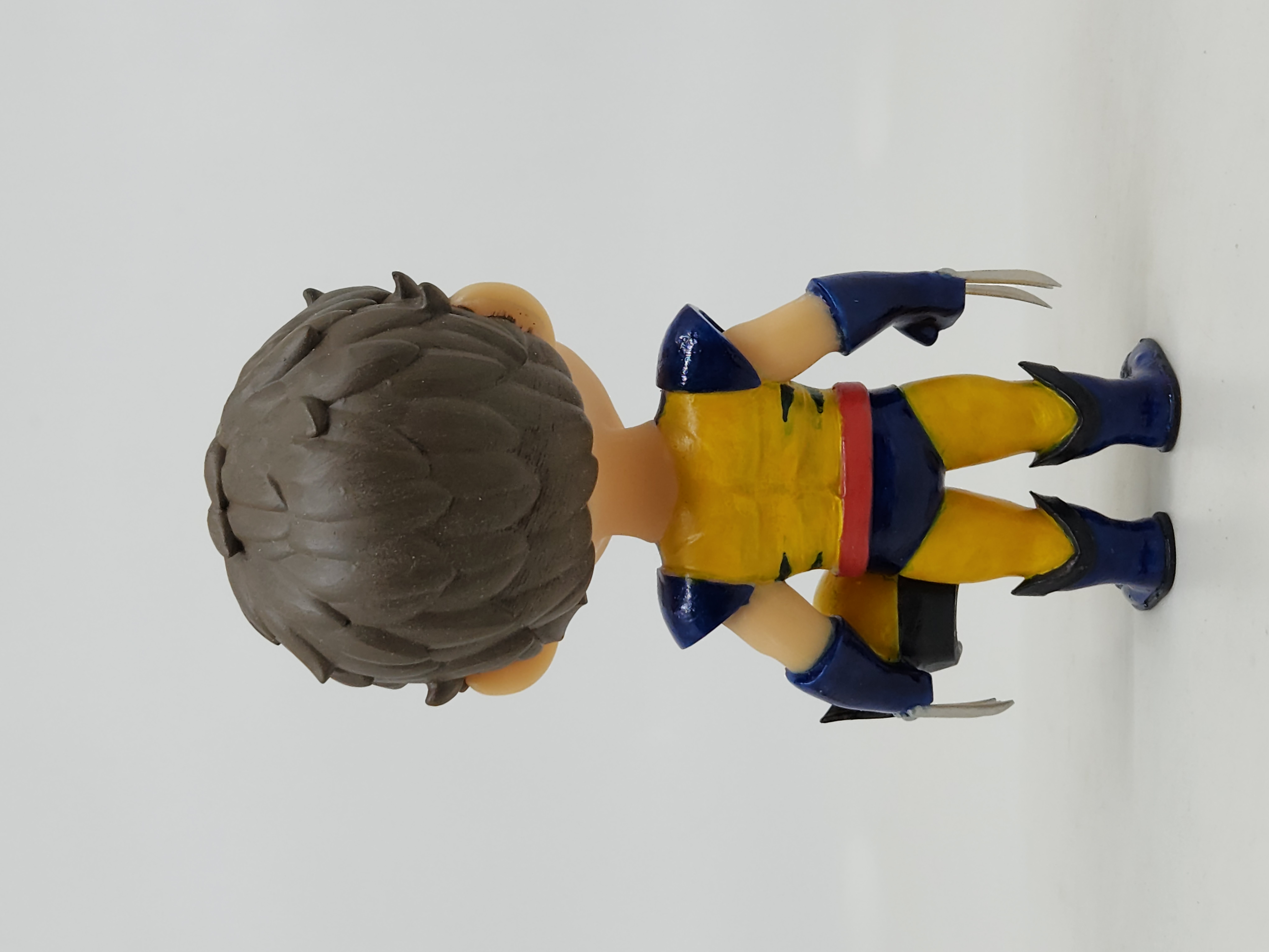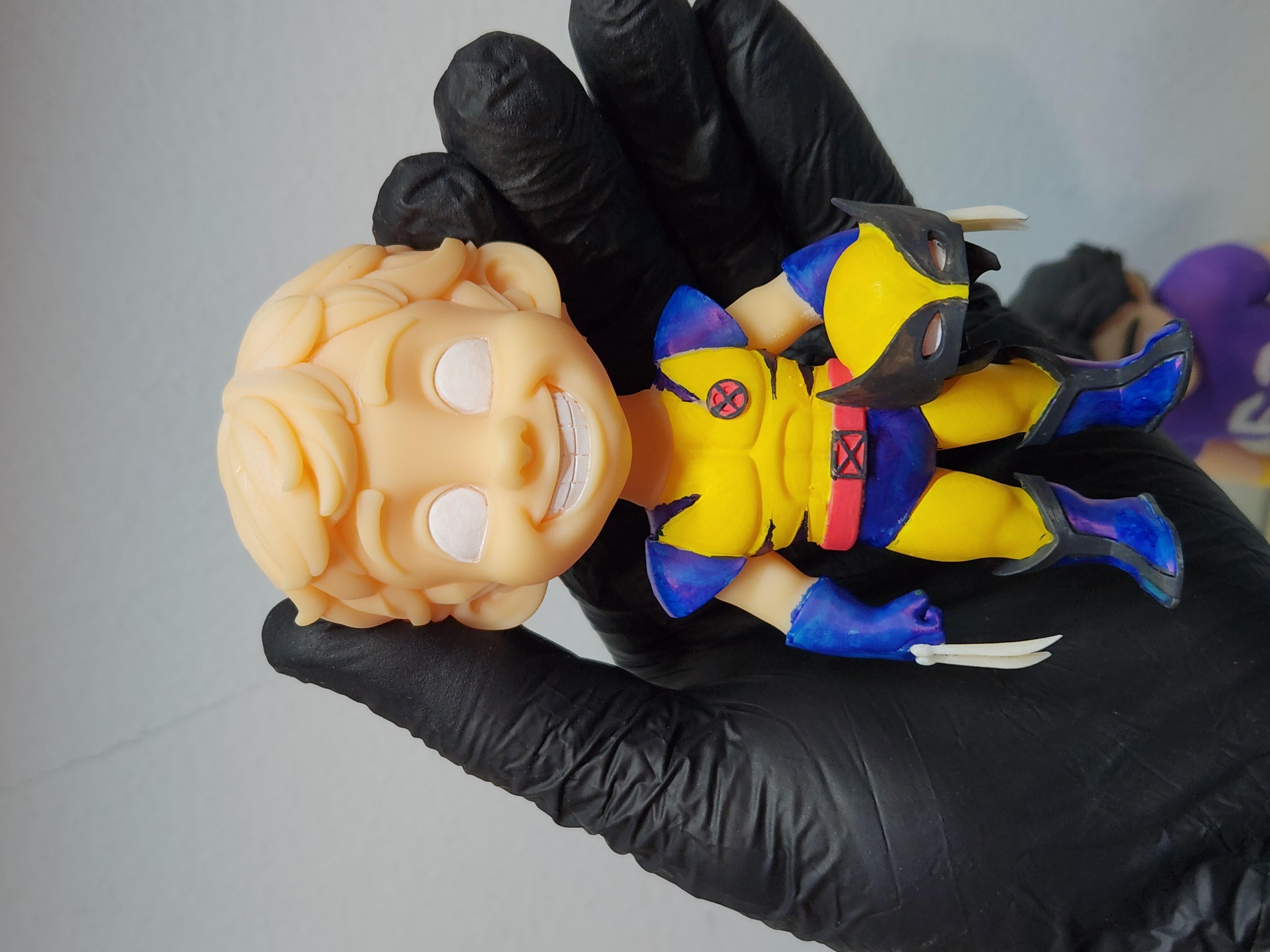 A criação uniu duas referências: a expressão facial foi baseada em uma foto do Davi usando uma camiseta com heróis da Marvel, enquanto o traje foi inspirado pelo fato de ele adorar usar uma fantasia do Wolverine.