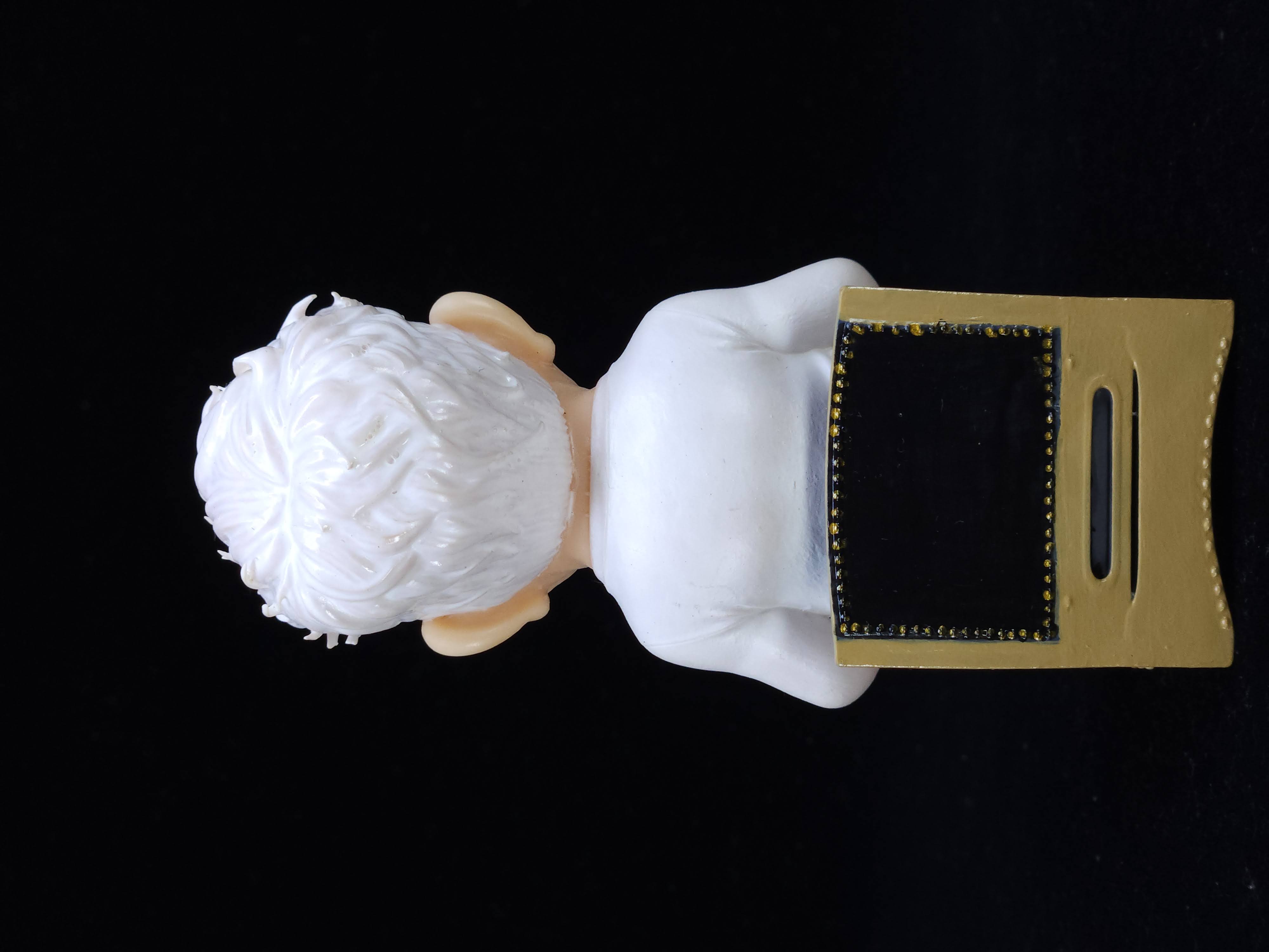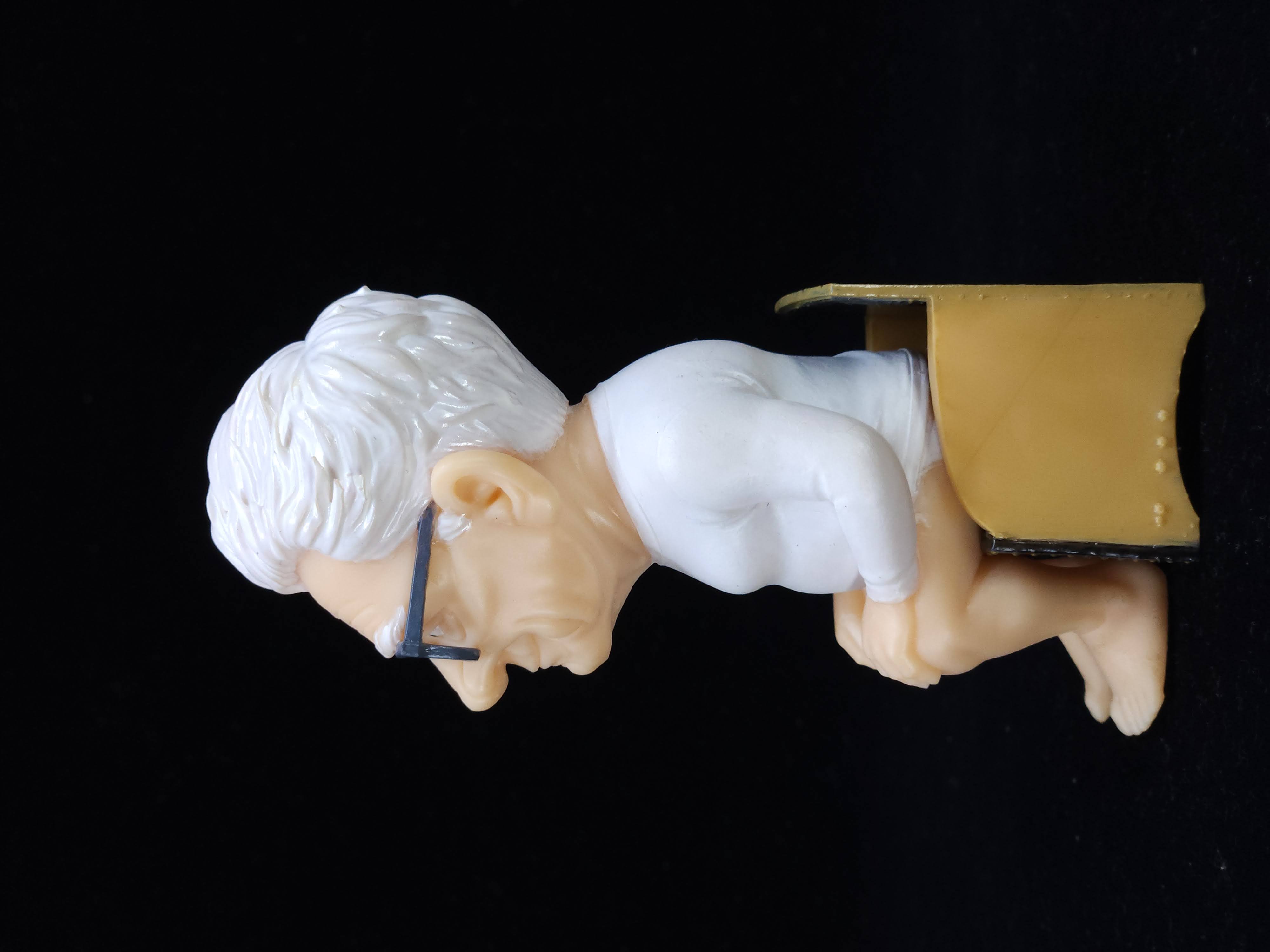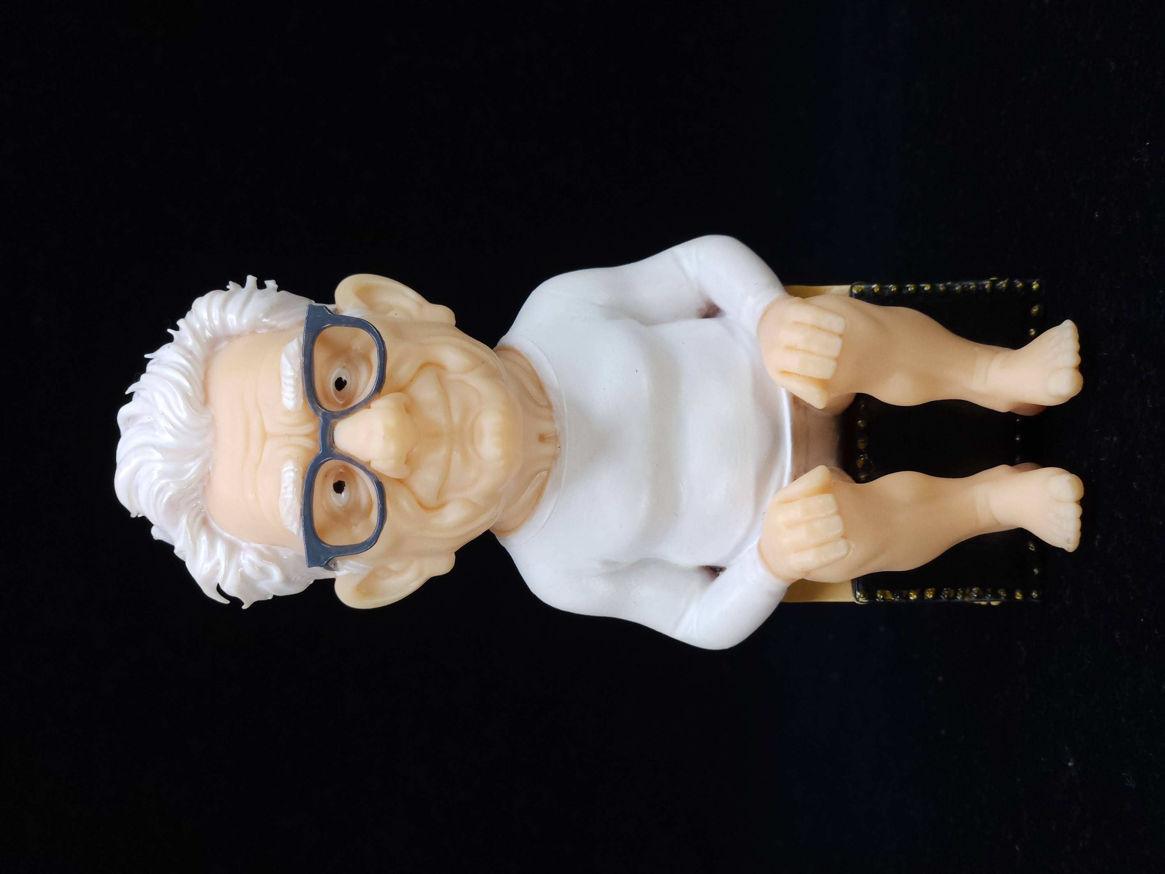 O "Joseph Pilates na Wunda Chair" é uma peça em resina maciça que foi encomendado pela Carina Martins (site e Instagram) que passou as orientações técnicas sobre posições e equipamento e, detalhes sobre a história do Joseph, como a visão que ele perdeu de um dos olhos. Tudo para que essa peça saísse com o aspecto que costumo fazer, de caricatura estilo cartoon, mas sem perder o link com a realidade.
