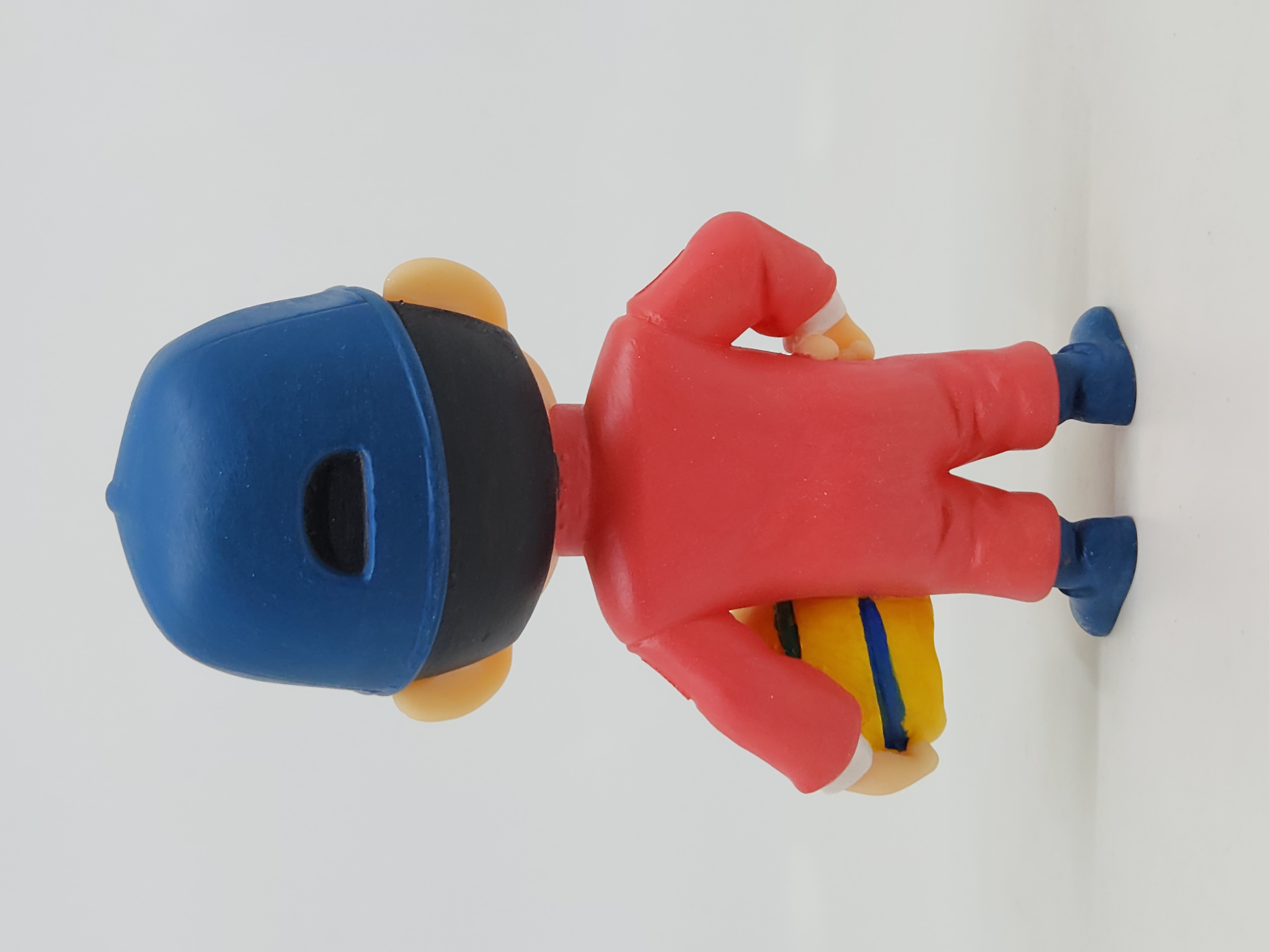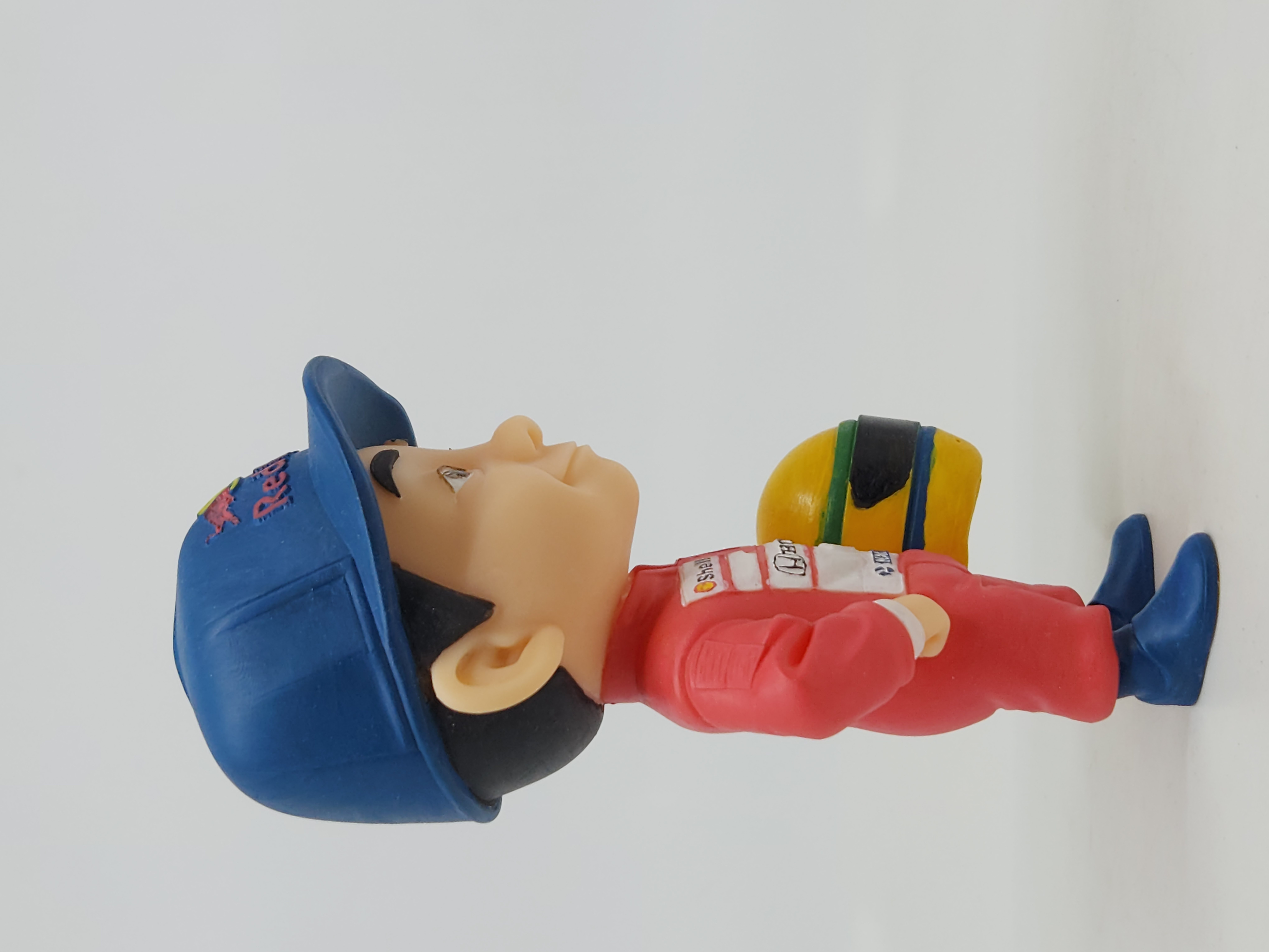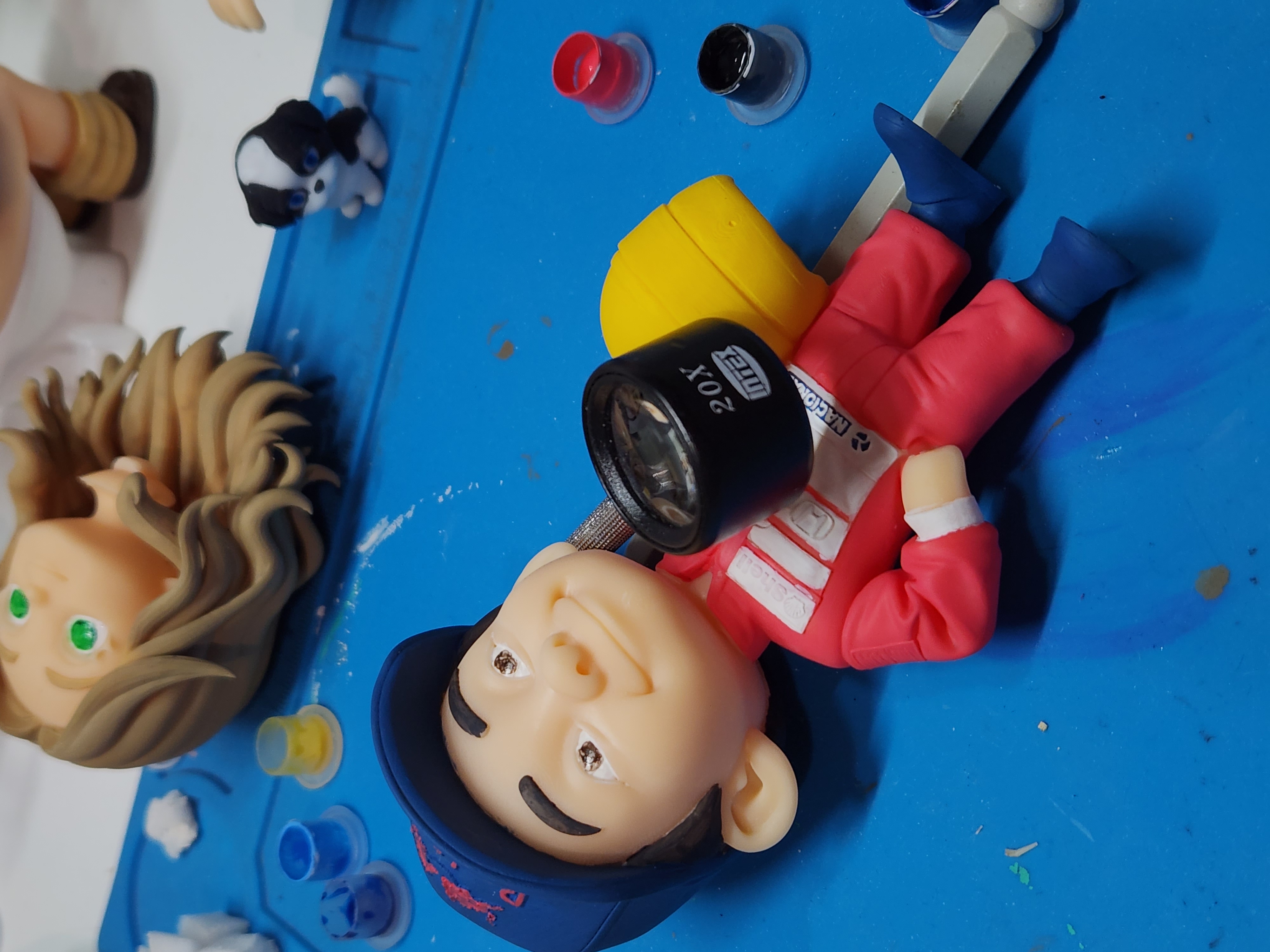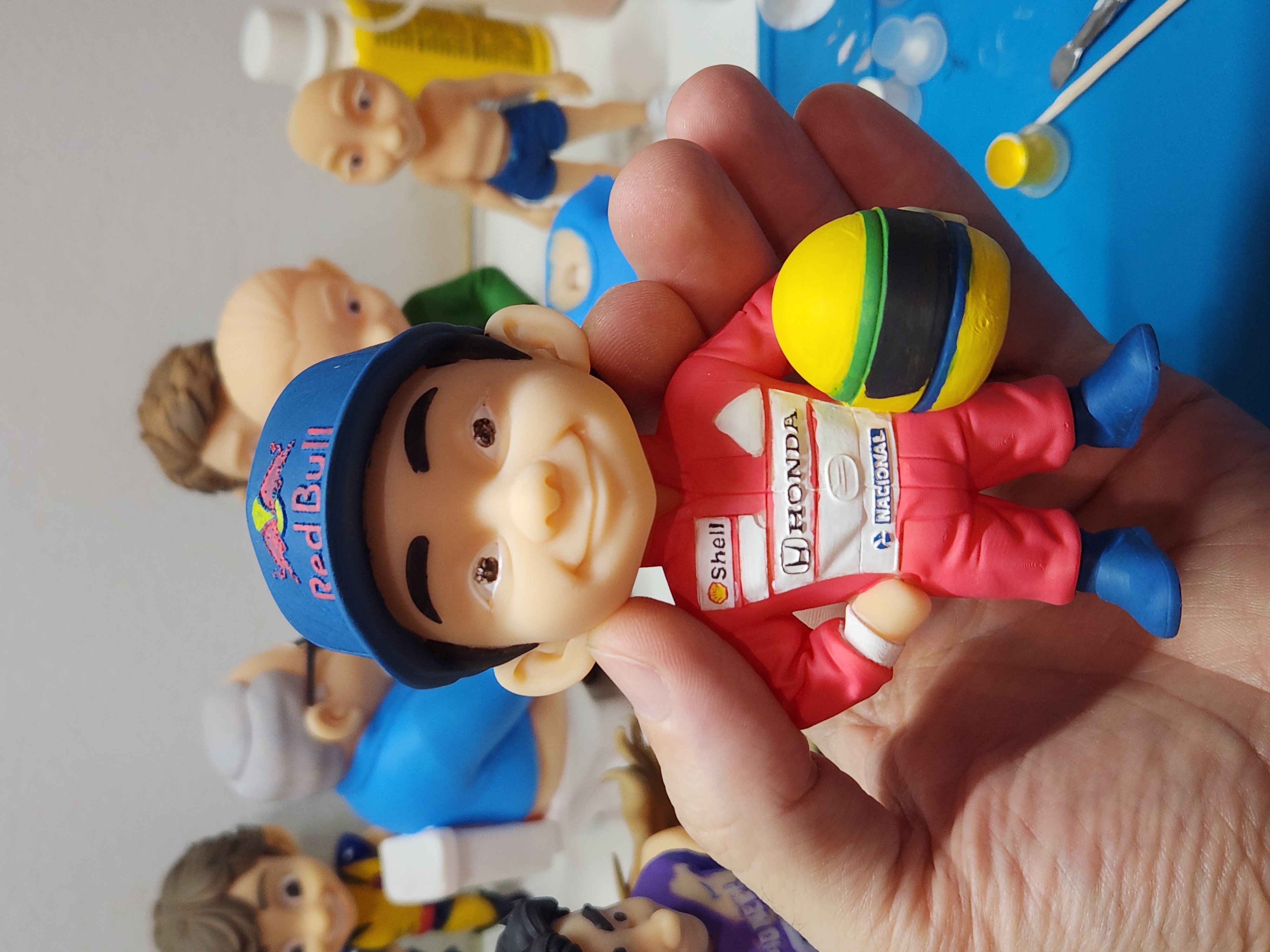 A criação uniu duas referências: a pose e o traje foram inspirados em uma foto do Lucas no Autódromo de Interlagos usando um macacão vermelho, enquanto o capacete amarelo com listras verdes e azuis foi incluído por ele ser um grande fã do Ayrton Senna.