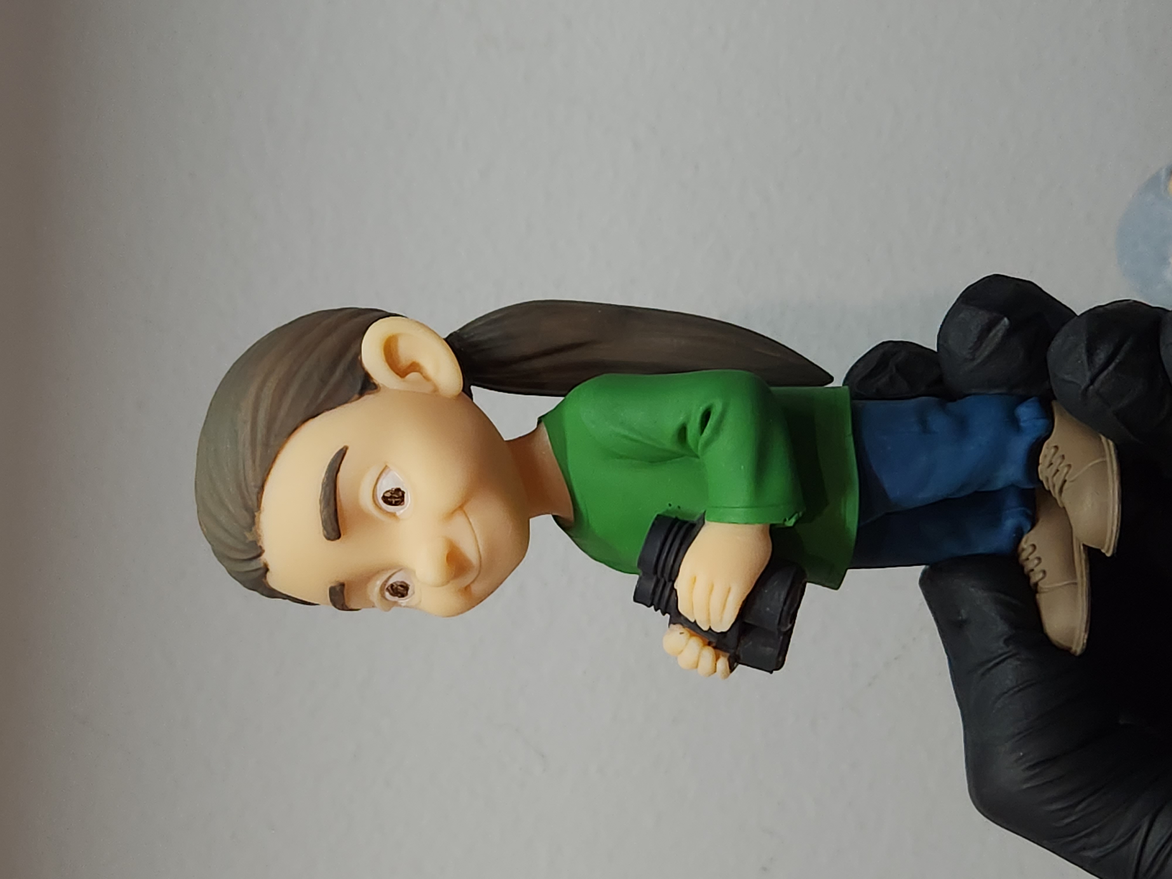 O Pedro também integra a coleção Netos do Demi para o Natal de 2025. Como seus pais são biólogos e trabalham com turismo de observação de pássaros, a miniatura reflete essa rotina de exploração.